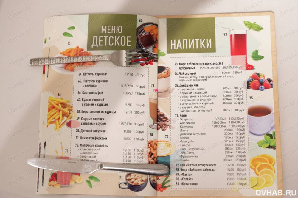 в описании есть актуальное меню