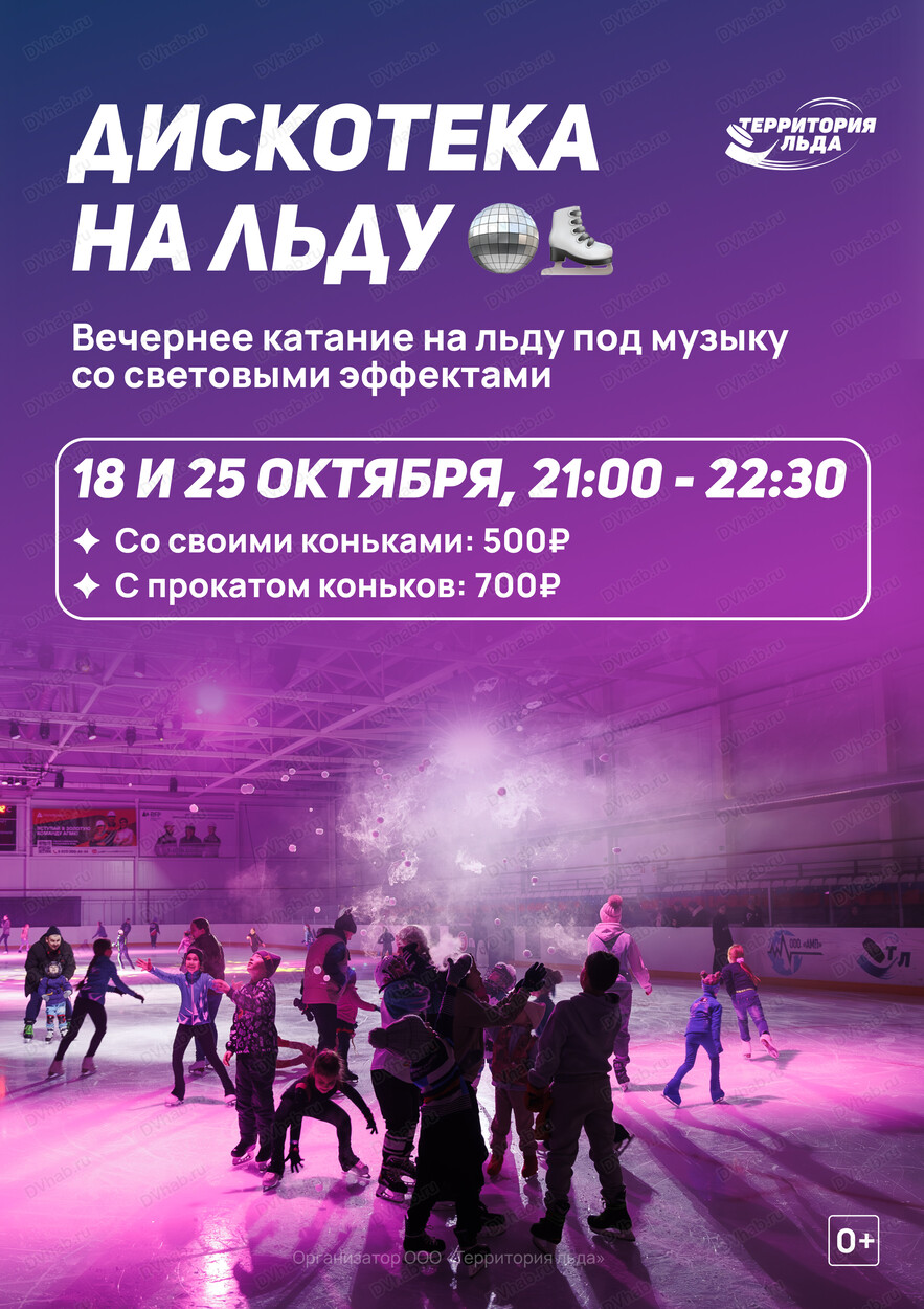 18 и 25 октября с 21:30 до 22:30 — катание на льду под музыку со световыми эффектами в "Территории льда". Прохлада, танцевальный плейлист и приятная вечерняя атмосфера. Зови друзей и приходи прокатиться под свет софитов.