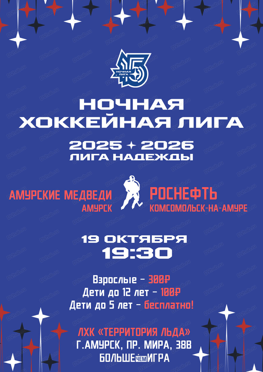 Ночная хоккейная лига 2025/2026 гг. Матч ХК "Амурские медведи"(Амурск) и ХК "Роснефть" (г. Комсомольск-на-Амуре).
