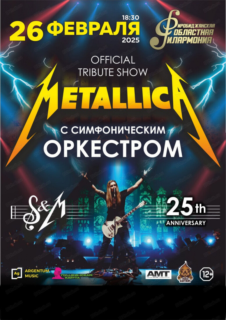 Шоу Metallica S&M Tribute with a Symphony Orchestra путешествует по миру с 2015 года. За это время музыканты дали свыше 300 аншлаговых концертов, а всего шоу посмотрели почти один миллион человек! Это один из самых масштабных и успешных трибьют-проектов не только в нашей стране, но и во всем мире! Не пропусти эпическое симфоническое шоу в Биробиджане 26 февраля!