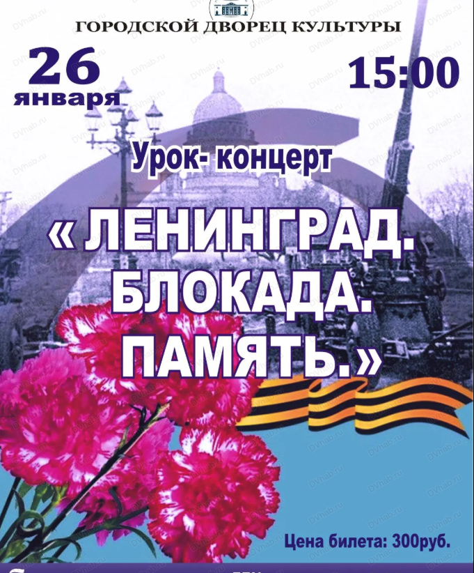 26 января в 15:00 городской Дворец культуры приглашает на урок-концерт, посвященный Дню снятия блокады Ленинграда - "Ленинград. Блокада. Память".