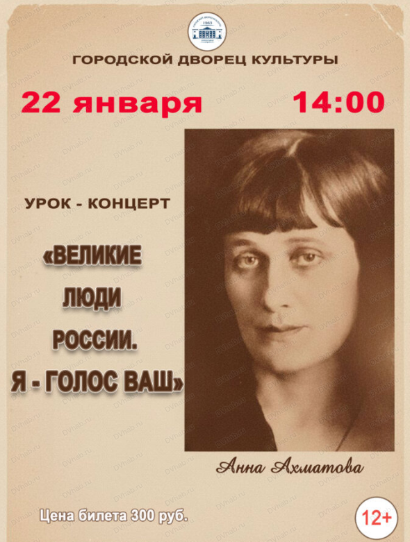 Вас приглашают на уникальный урок-концерт из цикла «Великие люди России», посвященный судьбе и творчеству Анны Ахматовой.