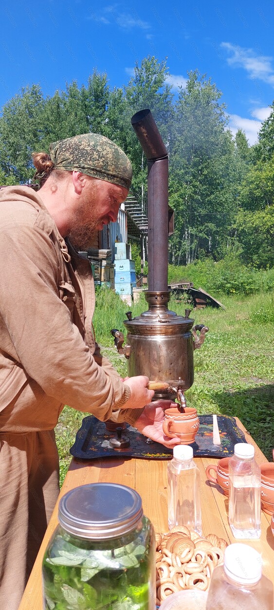 Дегустация: чай – тот самый с самовара на дровах, сбитень, мед, березовый сок, соты.