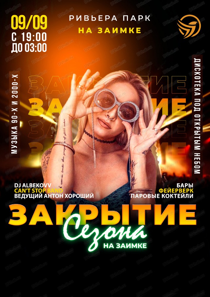 Вас ждёт группа Can't Stop band, ведущий Антон Хороший, DJ Albekovv, бары, коктейли, дискотека 90-х и 2000-х под открытым небом, веселые конкурсы, подарки, и конечно же, фейерверк.