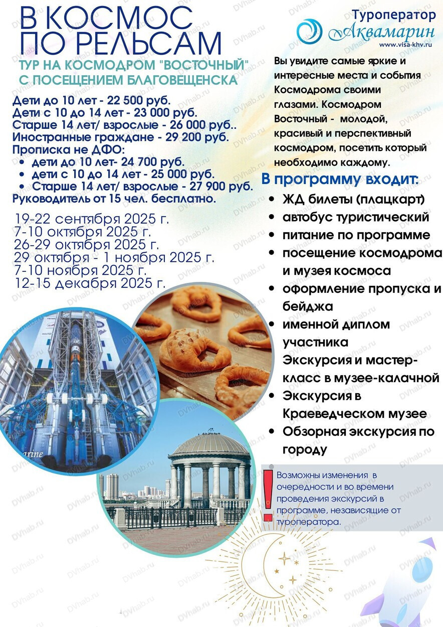 Туроператор "Аквамарин" приглашает детей и взрослых в увлекательный тур "В космос по рельсам" с посещением Благовещенска.