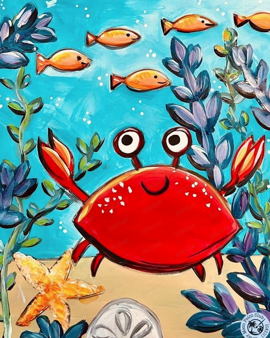 Участники мастер-класса нарисуют краба. Все материалы: краски и бумага выдаются. Для детей 4-6 лет.