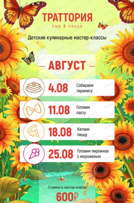Интересное и познавательное развлечение для вашего ребенка. Специально разработанные детские мастер-классы от шеф-поваров в дружеской атмосфере ресторана "Траттория".