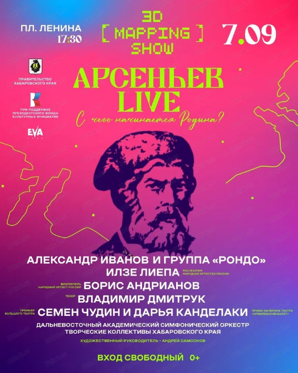 7 сентября в Хабаровске состоится четвертый ежегодный музыкально-просветительский фестиваль "Арсеньев LIVE" при поддержке Президентского Фонда культурных инициатив и Правительства Хабаровского края.