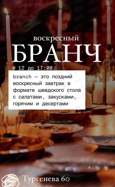 Italian branch — это поздний воскресный итальянский завтрак в формате шведского стола с салатами, закусками, горячим и десертами.