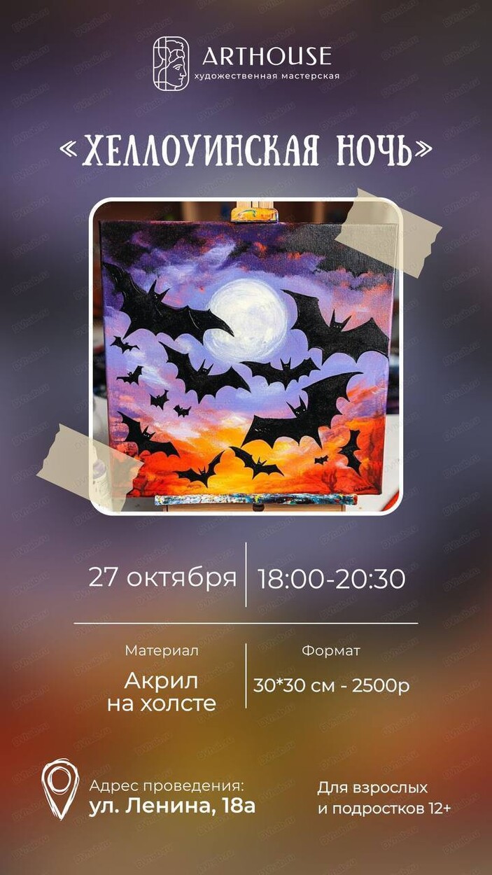 Мастер-класс по живописи акрилом "Хеллоуинская ночь" в студии "Артхаус".