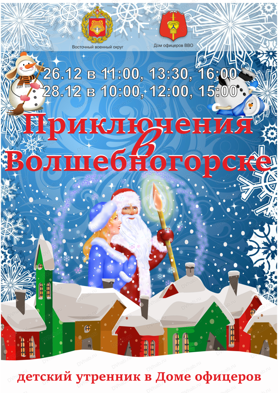 26 декабря в 11:00, 13:30, 16:00, 28 декабря в 10:00, 12:00, 15:00