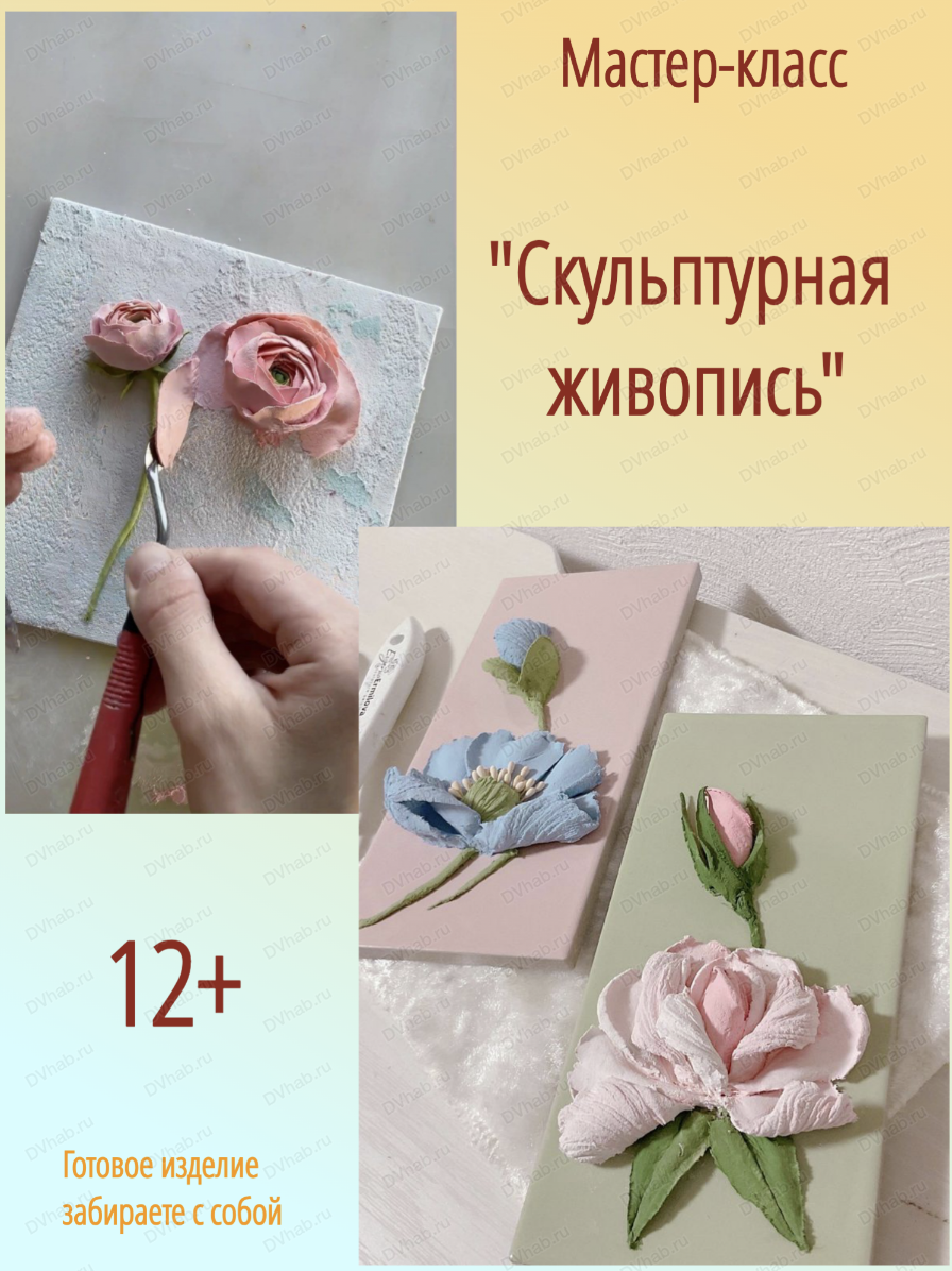 Вас приглашают с подругами и родственницами посетить мастер-класс по созданию картины с нежным и красивым цветком. Скульптурная живопись позволяет выполнить объемный цветок при помощи мастихина и специальной пасты для скульптурной живописи.