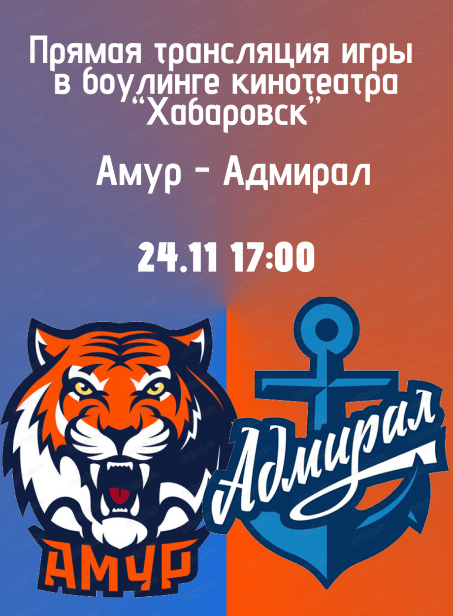 24 ноября в кинотеатре "Хабаровск" пройдет прямая трансляция хоккейного матча ХК "Амур"-ХК "Адмирал" (г. Владивосток).