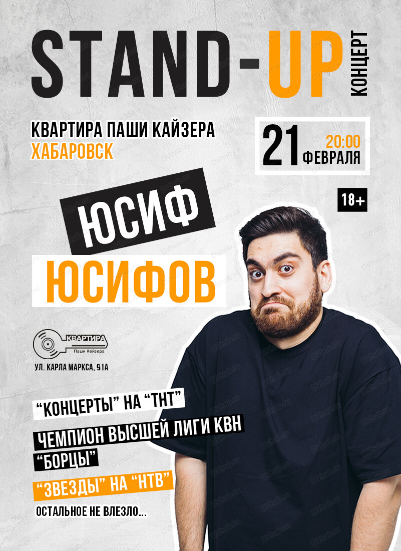 21 февраля в Квартире Паши Кейзера пройдет стендап-концерт Юсифа Юсифова.