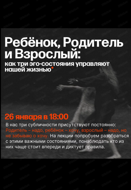 На лекции попробуем разобраться с этими важными состояниями, понаблюдать кто из них чаще стоит впереди и диктует правила. Понимание того, кто живёт внутри вас и какие потребности он пытается всеми силами закрыть, даёт свободу! Давайте искать путь к свободе вместе?