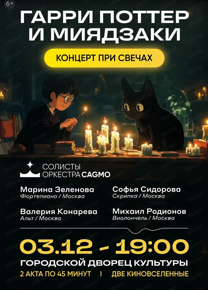 17 декабря в ГДК оркестр CAGMO представит программу "Гарри Поттер и Миядзаки"- концерт при свечах.