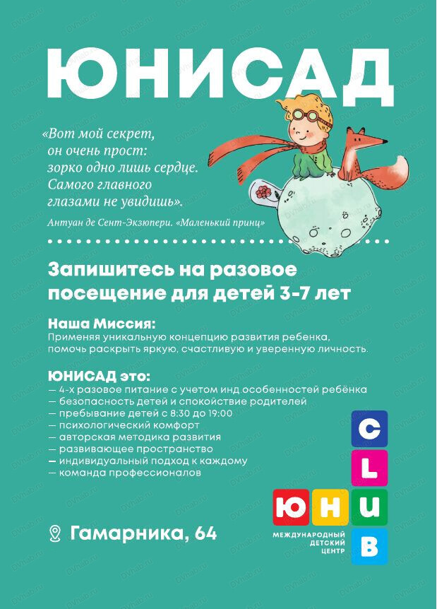 Группа кратковременного пребывания "Юни-сад" для детей от 3 до 6,5 лет.