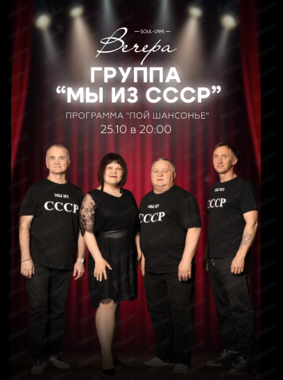 25 октября в кафе "Вечера" выступит группа "Мы из СССР" с программой "Пой, шансонье".
