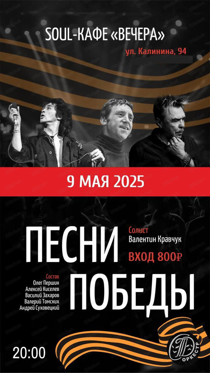 9 мая в 20:00 приглашаем вас в кафе "Вечера" на особый концерт "Песни Победы".