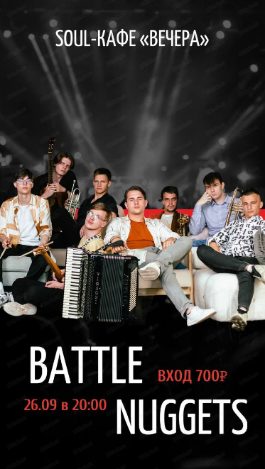 26 сентября в кафе "Вечера" пройдет концерт фолк-рок группы Battle Nuggets.