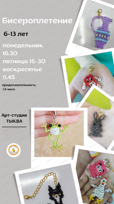 Арт-студия "Тыква" приглашает ребят 6-14 лет на занятия по бисероплетению.