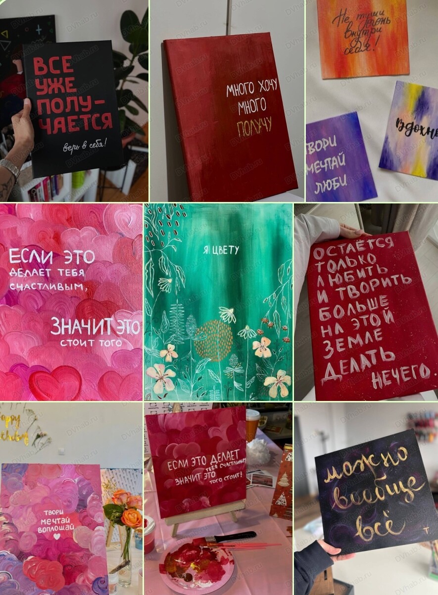 Создадим картину-аффирмацию, чтобы она заряжала, мотивировала и вдохновляла. Можно подготовить любимую цитату, также будут представлены референсы на выбор. Рисуем акрилом на холсте под добрую музыку и волшебную атмосферу! Формат 30х40 см.
