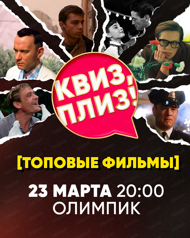 Квиз, плиз! [топовые фильмы] — это командная игра для тех, кто любит смотреть кино, но не вникает в андеграунд. Черновик с этой игры можно смело использовать как список "Что посмотреть вечером". Регистрируйте команду друзей от 2 до 9 человек, собирайтесь в баре, заказывайте еду и напитки. А отвечая на вопросы, веселитесь так, как будто про вас снимают кино.
