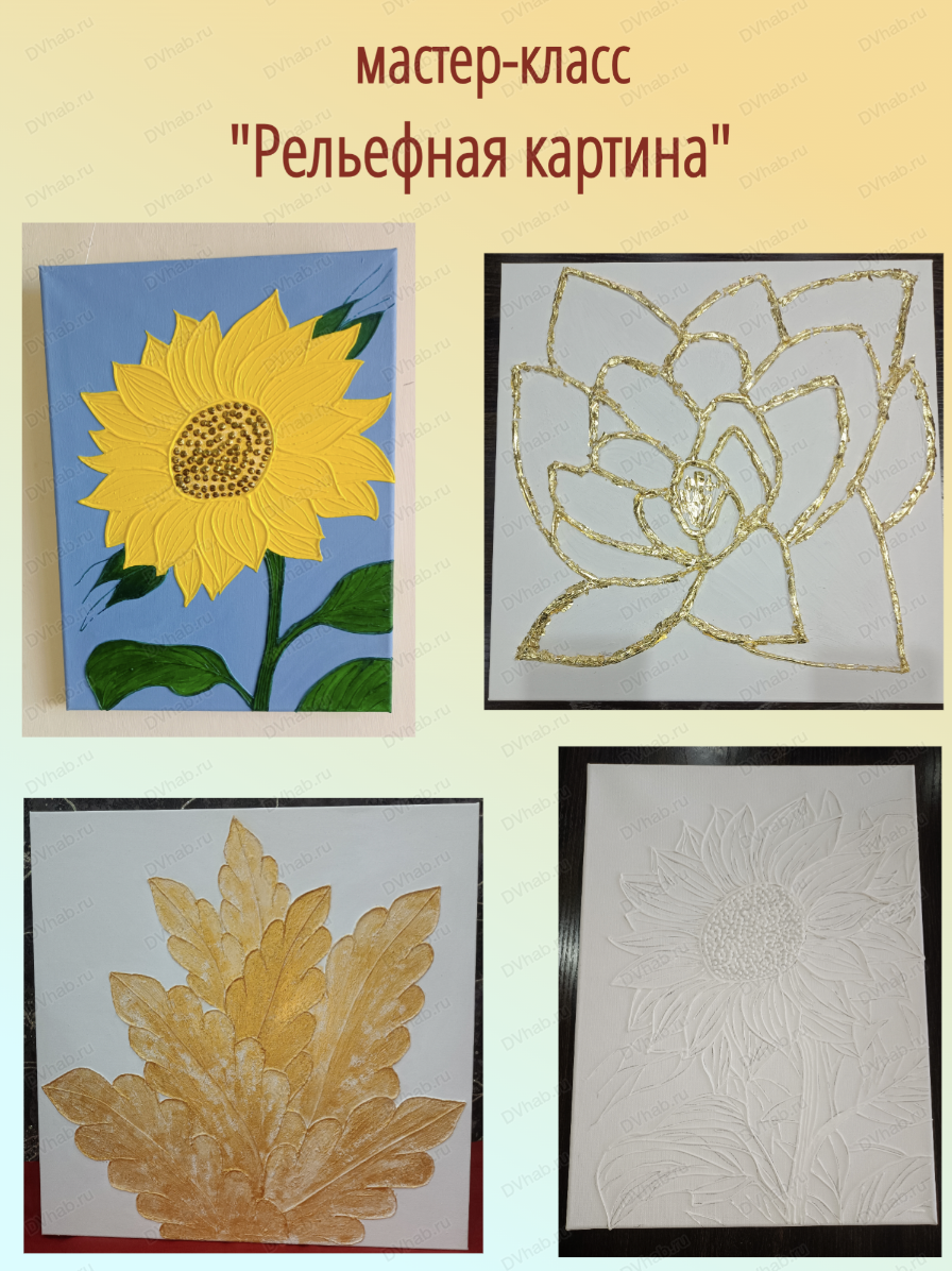 Погрузитесь в мир творчества и создайте уникальное произведение искусства на мастер-классе "Рельефная картина"! Забудьте о рутине и откройте для себя новые горизонты самовыражения. Под чутким руководством опытного мастера вы освоите технику создания объемных картин, используя текстурную пасту, мастихины и другие инструменты.