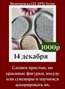 Вы зарегистрированы на событие «Мастер-класс по лепке и росписи подносов из глины», на 14 декабря 17:00
