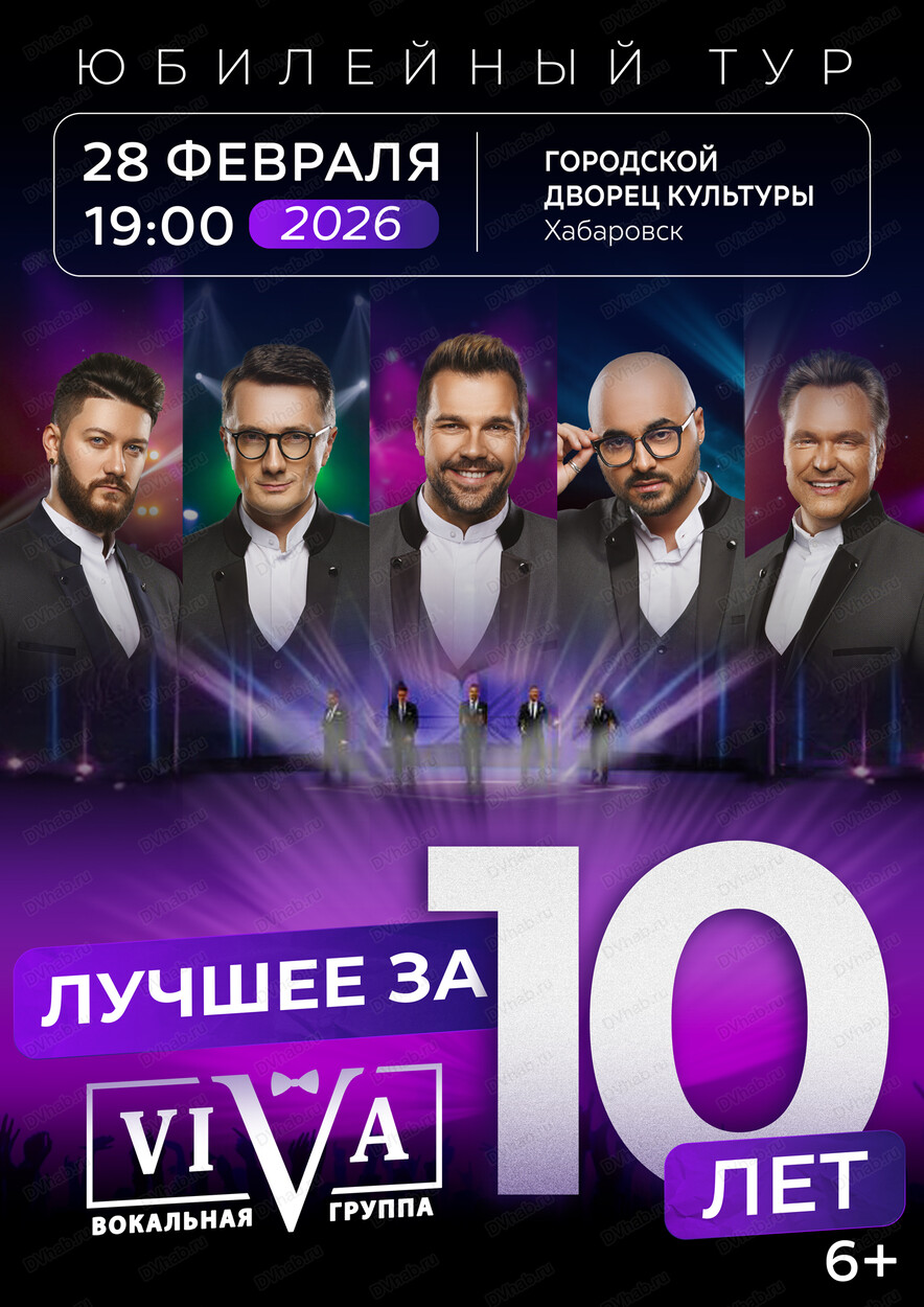 Вокальная группа ViVA отмечает важную дату – 10 лет ярких выступлений, незабываемых эмоций и музыкальных открытий. Вас приглашают на юбилейный концерт "Лучшее за 10 лет", чтобы разделить этот важный момент в истории коллектива.