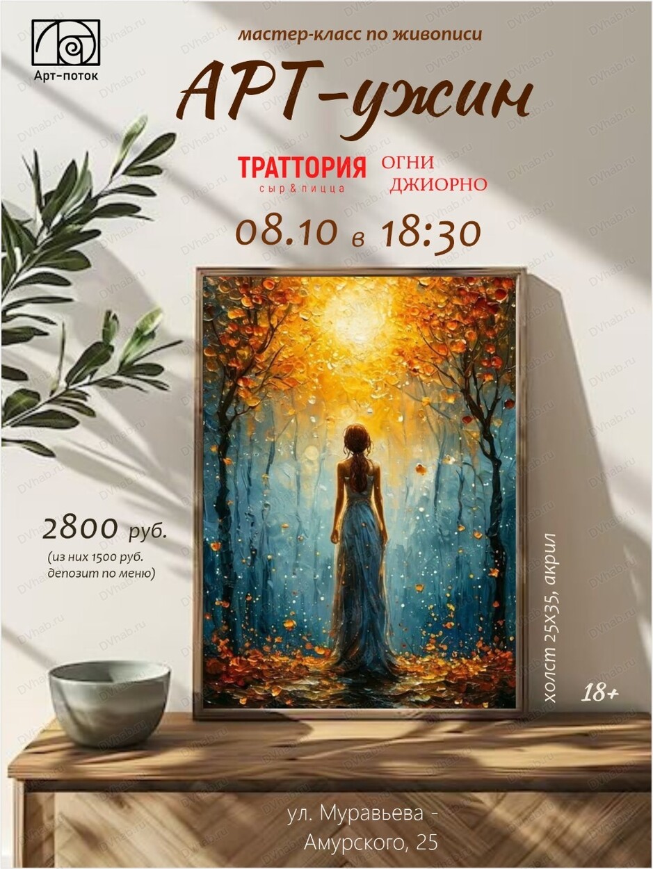 8 октября студия "Арт-поток" приглашает на арт-ужин (мастер-класс по живописи) в ресторан "Траттория. Огни Джиорно".