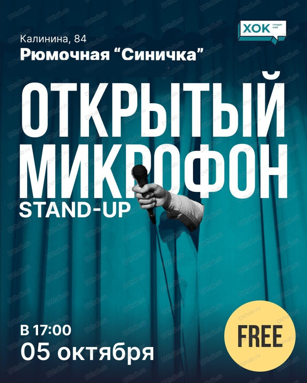 Вы зарегистрированы на событие «Стендап-концерт "Открытый микрофон"», на 5 октября 17:00