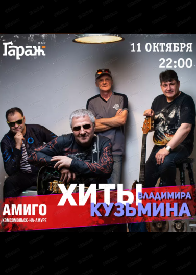11 октября в баре "Гараж" выступит группа "Амиго" с программой "Трибьют Владимира Кузьмина".