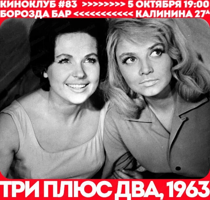 5 октября в баре "Борозда" пройдет показ фильма "Три плюс два".
