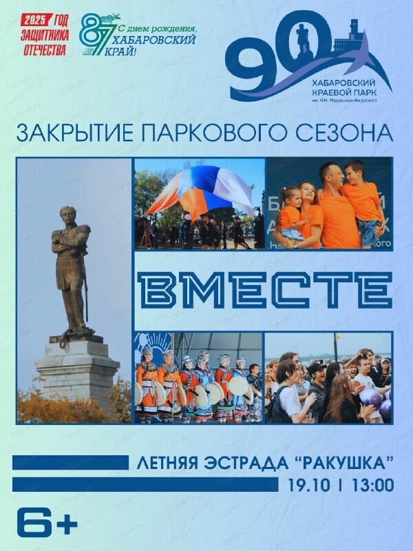 Закрытие паркового сезона "Вместе", приуроченного к Году Защитника Отечества и посвящённого 87-летию образования Хабаровского края.