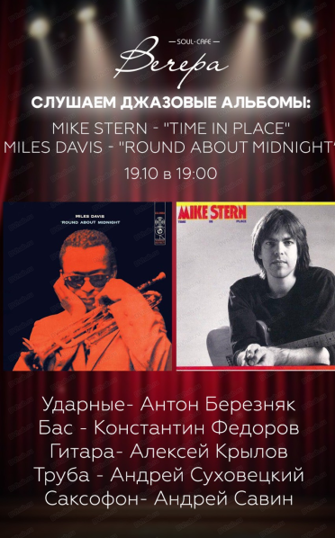 19 октября в кафе "Вечера" пройдет вечер "Слушаем джазовые альбомы".