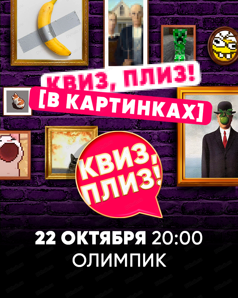 Квиз, плиз! [в картинках] — это командная игра, отличный способ провести вечер с друзьями в уютном баре и получить новые позитивные впечатления. Вас ждут визуальные задания на любой вкус: от знакомых ребусов до проверок на внимательность.