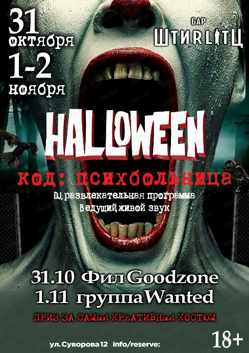 31 октября - 1 и 2 ноября в баре "Штирлиц" Хэллоуин.