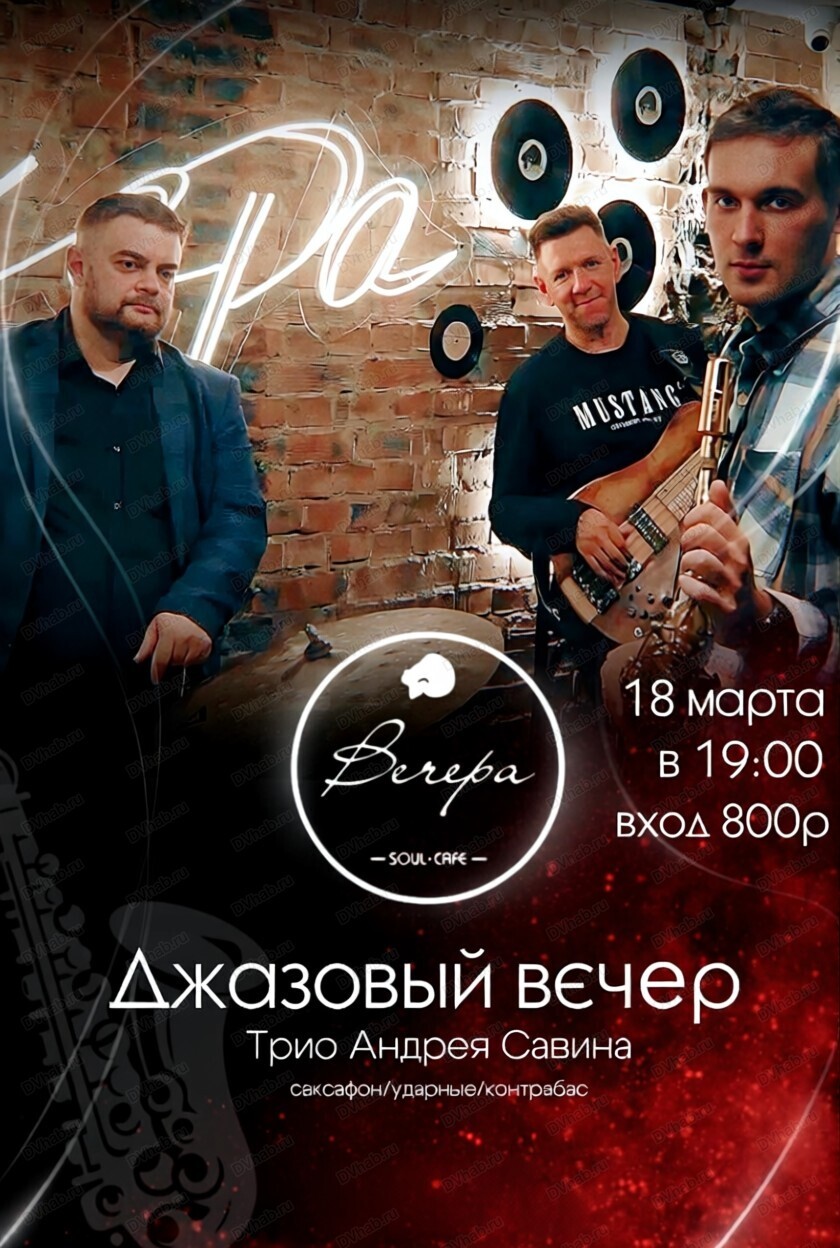18 марта в кафе "Вечера" выступит трио Андрея Савина.