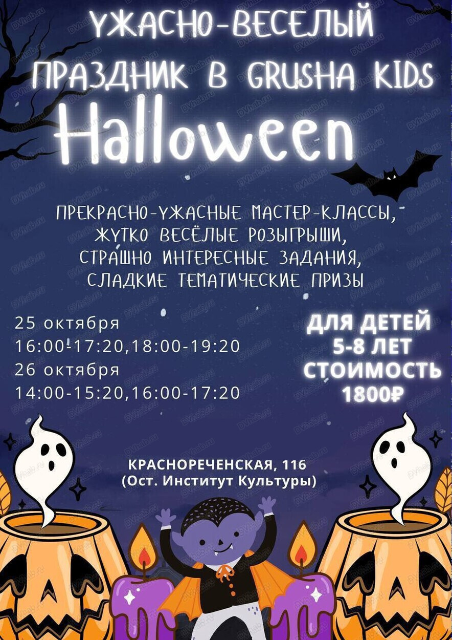 Хеллоуин в Grusha kids. 25 и 26 октября в детском клубе Grusha kids пройдёт тематическая вечеринка "Хеллоуин".