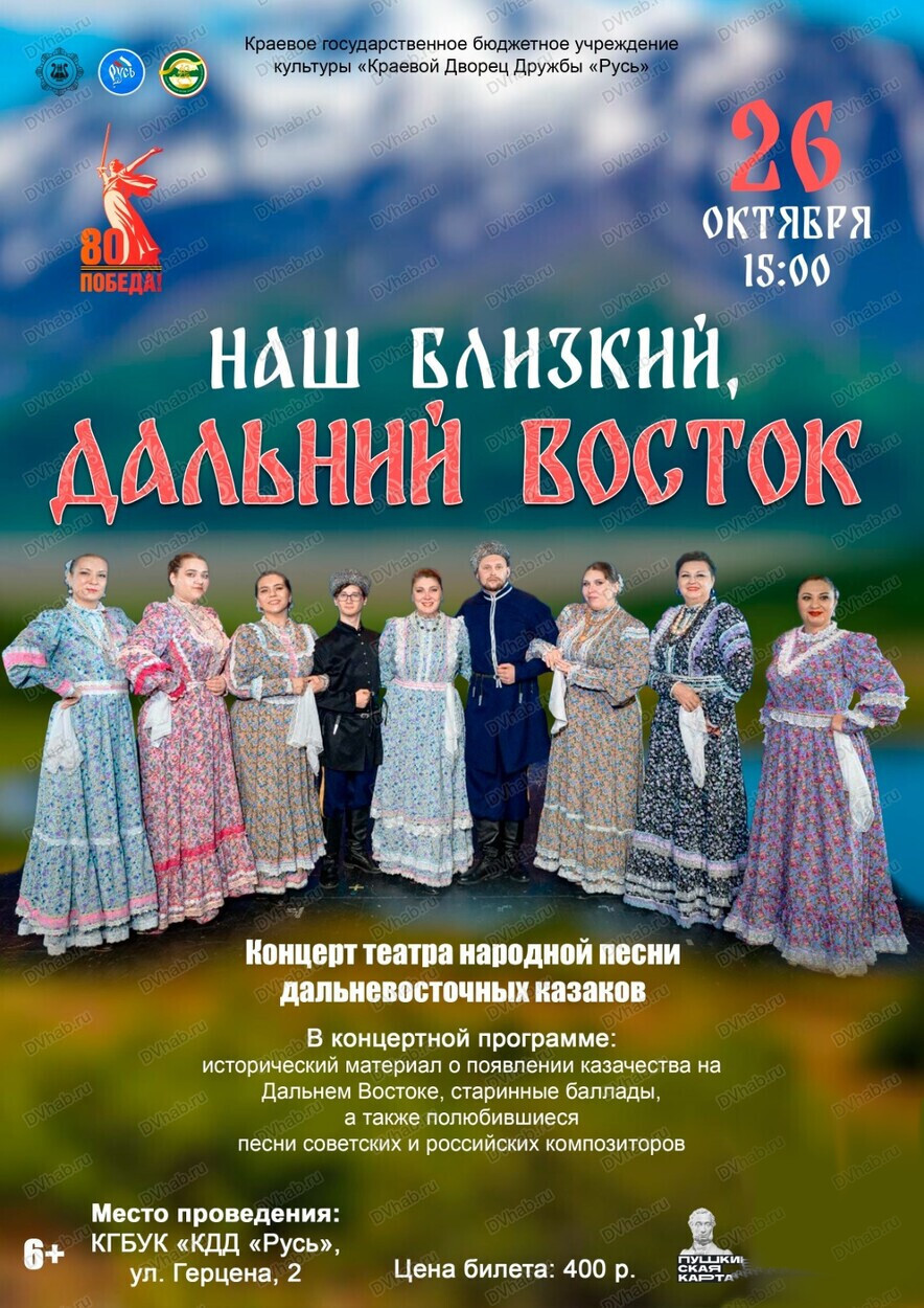 Студия народного творчества "Елань" и театр народной песни дальневосточных казаков подарят хабаровчанам и его гостям концертную программу "Наш близкий Дальний Восток".