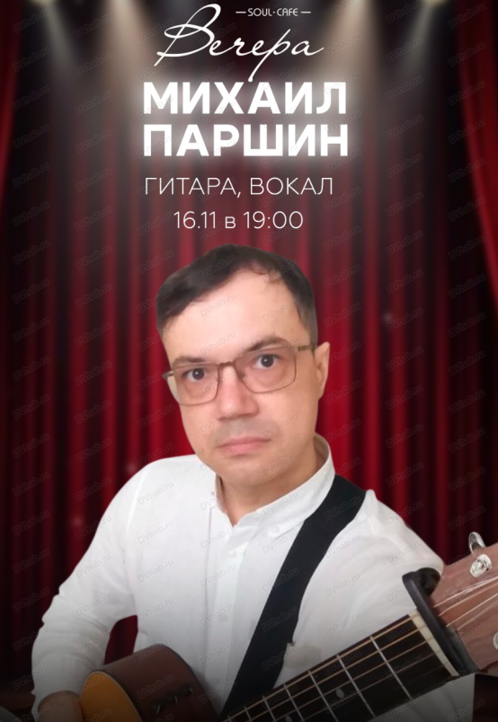 16 ноября в кафе "Вечера" выступит Михаил Паршин (гитара, вокал).