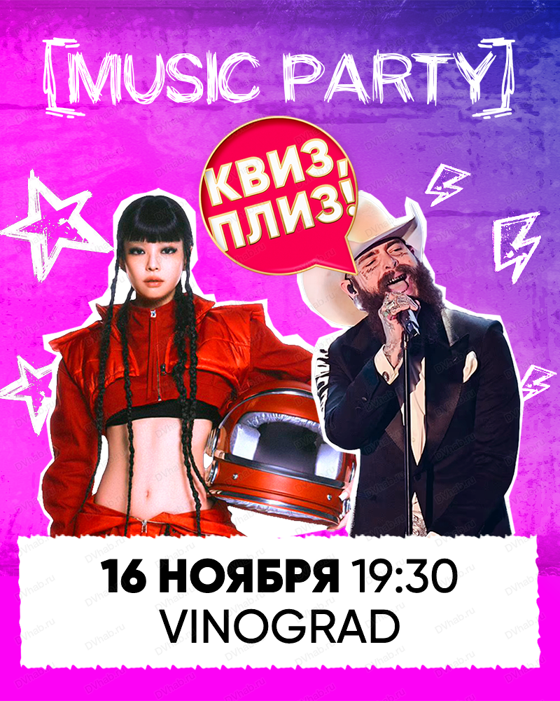Квиз, плиз! [music party] — это формат музыкальных игр "Квиз, плиз!", в котором музыка и хорошее настроение превыше всего. Огромное количество людей играет в "Квиз, плиз!" по всему миру, попробуйте и вы. Собирайте команду от 2 до 9 человек и регистрируйтесь.