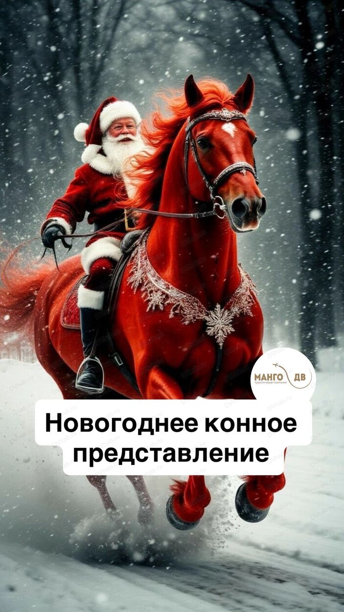 Конный клуб приглашает вас на новогоднее конное представление.