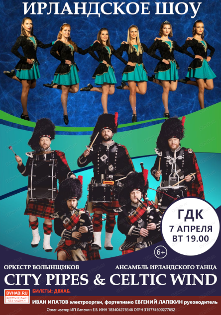 Яркое и динамичное музыкально - танцевальное шоу от Оркестра волынщиков City Pipes совместно с ансамблем ирландского танца Celtic Wind!