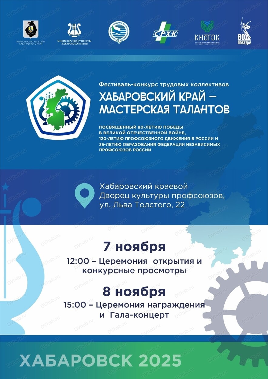 7-8 ноября на сцене ДК Профсоюзов Хабаровск| Танцы| Вокал|Коллективы состоится масштабный фестиваль-конкурс любительского творчества трудовых коллективов «Хабаровский край – мастерская талантов».