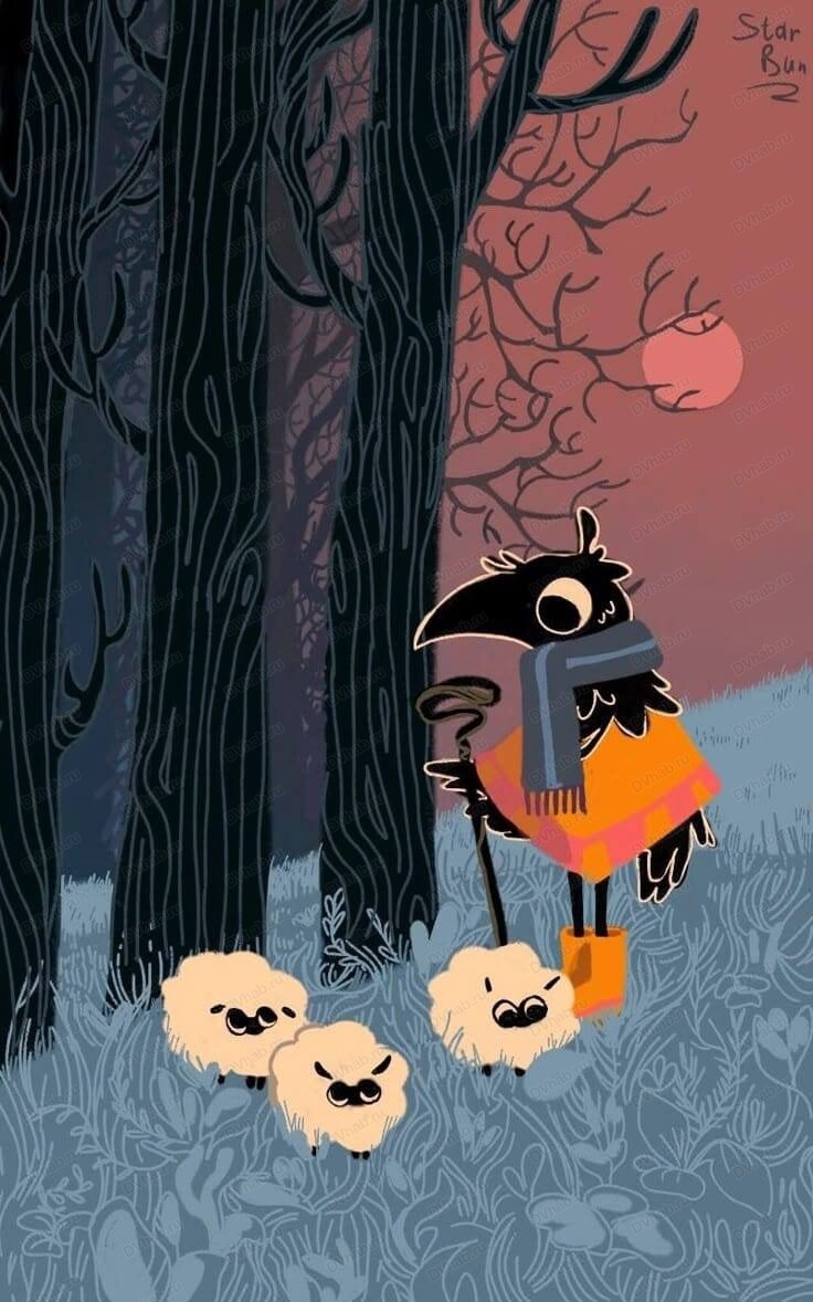 Мастер‑класс "Цифровая иллюстрация: лесной пейзаж с вороном и барашками".