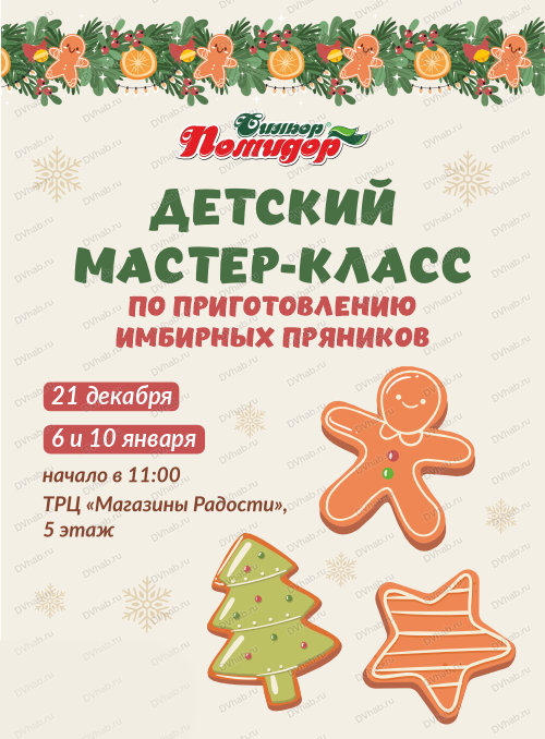 Кафе "Синьор Помидор" приглашает на мастер-класс по приготовлению имбирных пряников.