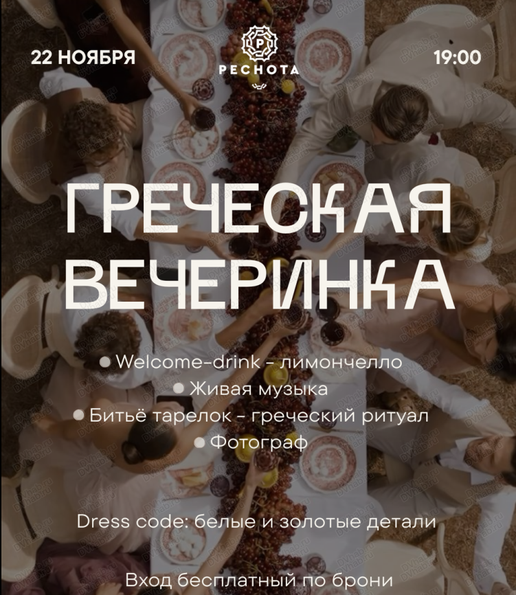 22 ноября в ресторане "Реснота" пройдет "Греческая вечеринка".