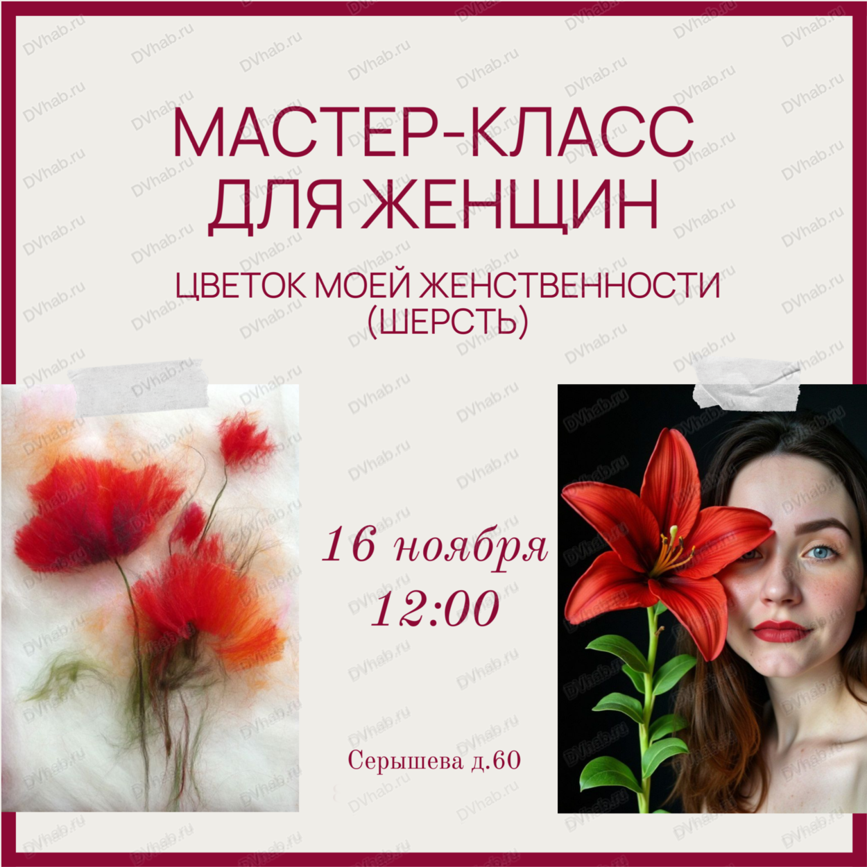 Вы зарегистрированы на событие «Мастер-класс по арт-терапии "Цветок моей женственности"», на 16 ноября 12:00